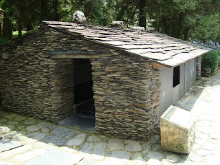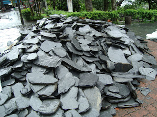 The houses are made from the abundance of smashed stones in the mountain areas. The tectonic forces that are pushing the Philippine plate under the Eurasian plate also smash rocks. One can find large piles of smashed rocks lying on the side of the road. These make a great building material.