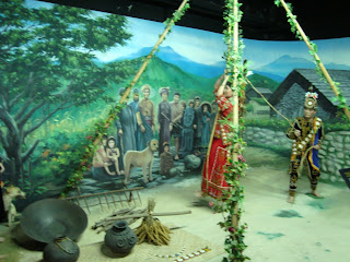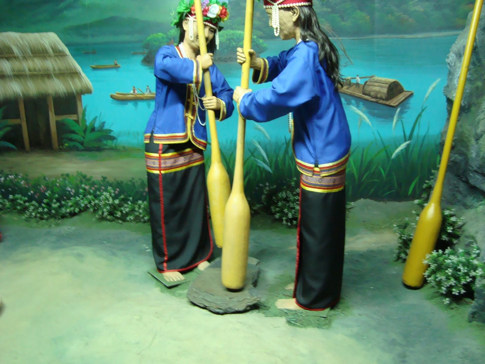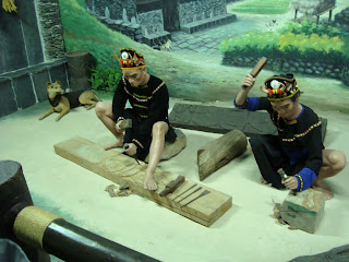 The final display at the TACP was a wax museum that showed different aspects of Aboriginal culture. One interesting thing on display was the Pestle Music. The Aboriginals make percussion music by striking long pestles on a hard surface. This probably developed from their method of husking millet grains by ramming them in a large ceramic bowl with a large pestle.